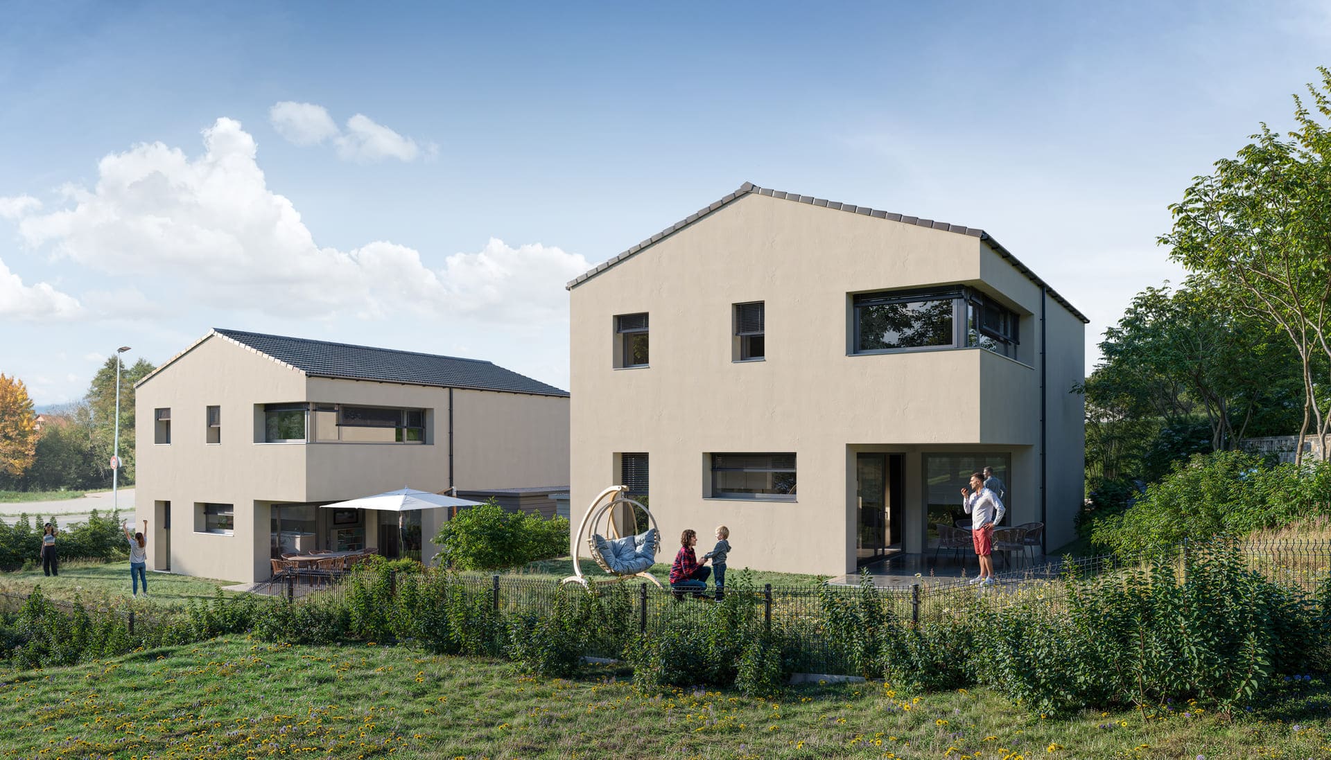 Cette nouvelle promotion réunit 5 villas individuelles de 5,5 pièces offrant 138 m2 de surface habitable. Leur architecture, soignée et actuelle, met en valeur des espaces de vie généreux.